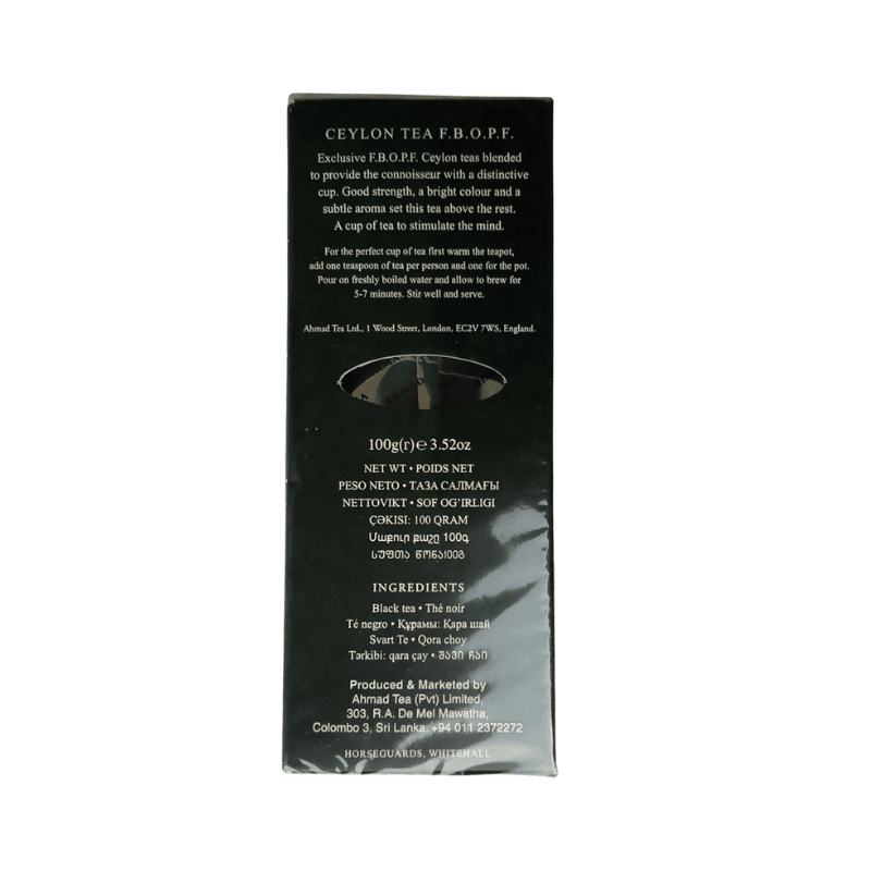 Ahmad Tea Ceylon F.B.O.P. Loose Leaf Tea is the ultimate solution for a truly authentic tea experience because it delivers a bright, bold flavor and a subtle aroma. It also features premium F.B.O.P. Ceylon tea leaves and an invigorating, soothing character, making it the perfect choice for discerning tea drinkers. This exquisite blend is carefully crafted to stimulate the mind and senses, offering a taste of Sri Lanka’s rich tea-growing heritage.