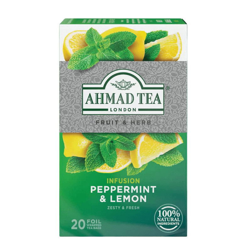 Experience the invigorating blend of Ahmad Tea Peppermint & Lemon, a soothing and refreshing infusion designed for relaxation. This Fruit & Herb tea features 100% natural ingredients, including vibrant peppermint and zesty lemon, to offer a delightful digestive aid. Each box contains 20 individually foil-wrapped tea bags, ensuring freshness and convenience. Perfect for unwinding after a meal or enjoying a moment of calm anytime.