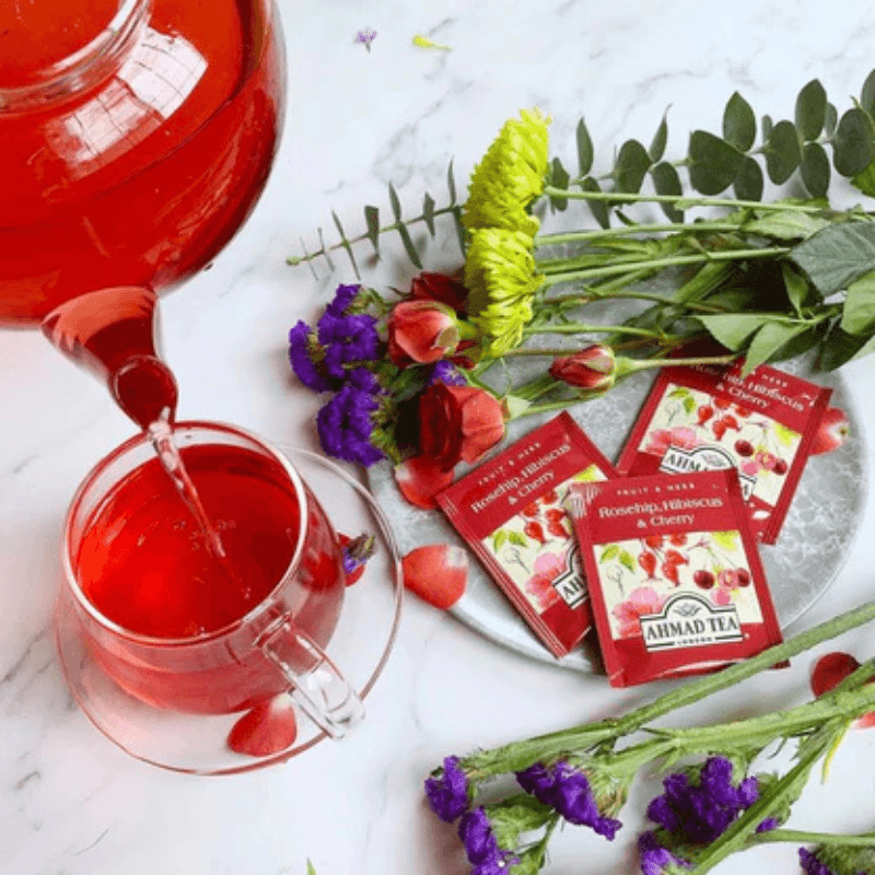 Rosehip, Hibiscus & Cherry Infusion by Ahmad Tea is the ultimate solution for a bright, flavourful, and refreshing beverage because it features a harmonious blend of natural fruits and herbs. It also includes 100% natural ingredients and is presented in convenient foil-wrapped tea bags, making it the perfect choice for anyone seeking a delicious and healthy infusion. This tea offers a delightful sensory experience that rejuvenates the palate and uplifts the spirit.