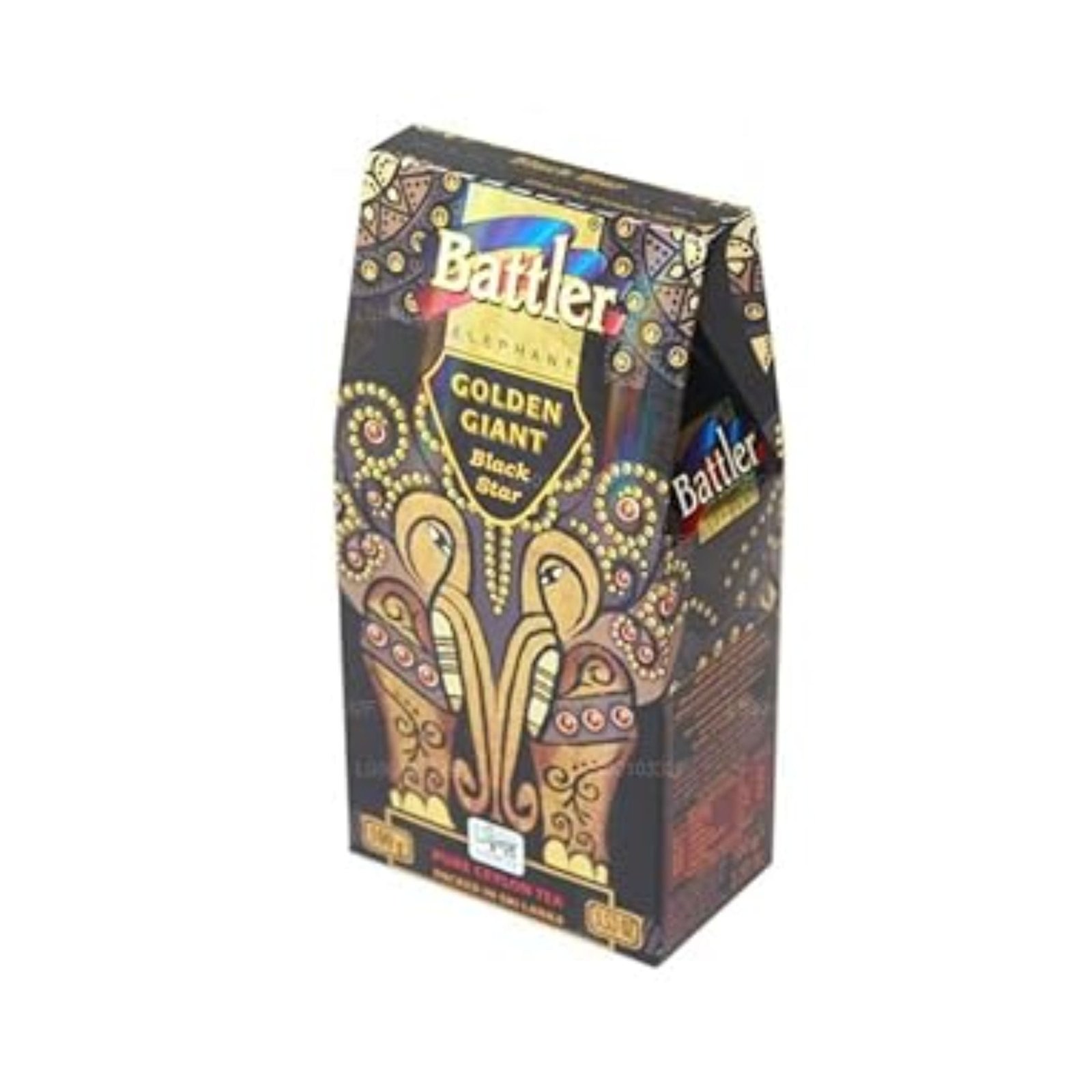 Experience the rich and aromatic Battler Golden Giant Black Star Ceylon Black Tea. Sourced from the pristine tea estates of Sri Lanka, this exquisite black tea offers a robust flavor profile with a smooth finish. The eye-catching packaging, adorned with traditional elephant motifs, reflects the quality and heritage within. Perfect for tea connoisseurs seeking an authentic Ceylon tea experience, this 100g pack is ideal for daily enjoyment or as a special gift. Brew a cup and savor the taste of Sri Lanka’s finest.