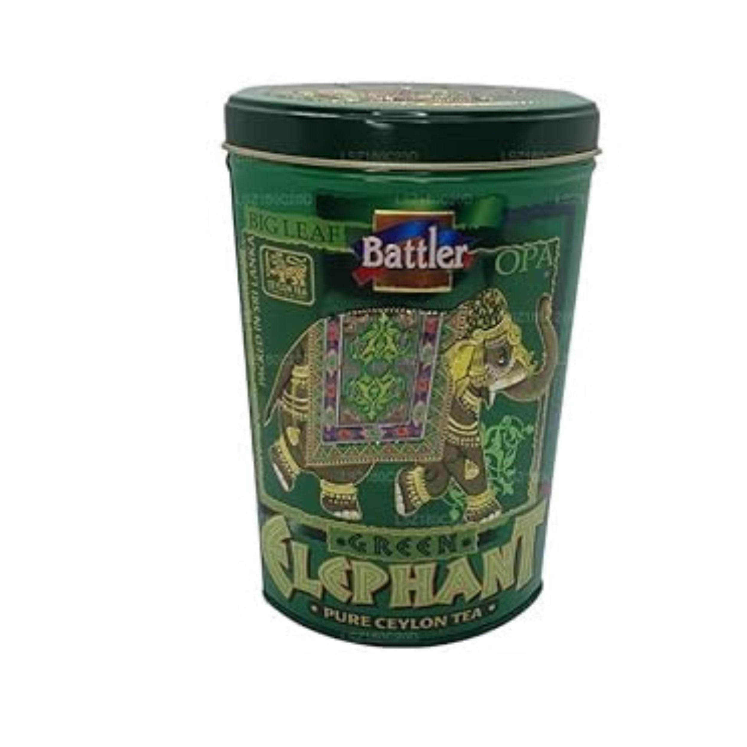 Discover the authentic taste of Ceylon Green Tea with Battler’s Green Elephant blend. This OPA grade loose leaf tea is expertly packed in Sri Lanka for ultimate freshness. Presented in a decorative tin caddy featuring a vibrant “Green Elephant” motif, it’s perfect for personal enjoyment or as a thoughtful gift. Experience the refreshing and natural goodness of Sri Lankan tea, ideal for any time of day.