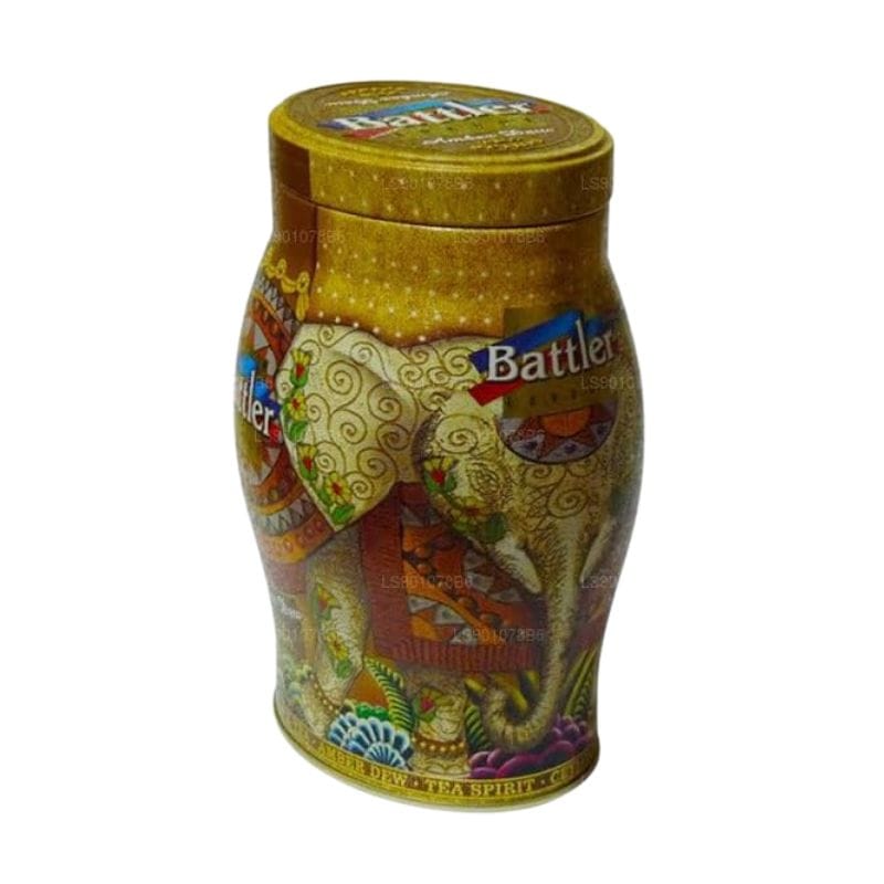 Discover the Battler Amber Dew Ceylon Black Tea Tin Caddy, a beautiful and practical way to store premium Sri Lankan tea. This exquisite tin features a vibrant, traditional design with an ornate elephant motif, showcasing Sri Lankan artistry. Inside, you’ll find Amber Dew Ceylon Black Tea, a low-grown Pekoe known for its rich, smooth flavor and bright aroma. It’s the perfect keepsake for tea enthusiasts and a thoughtful gift that captures the essence of Sri Lanka.
