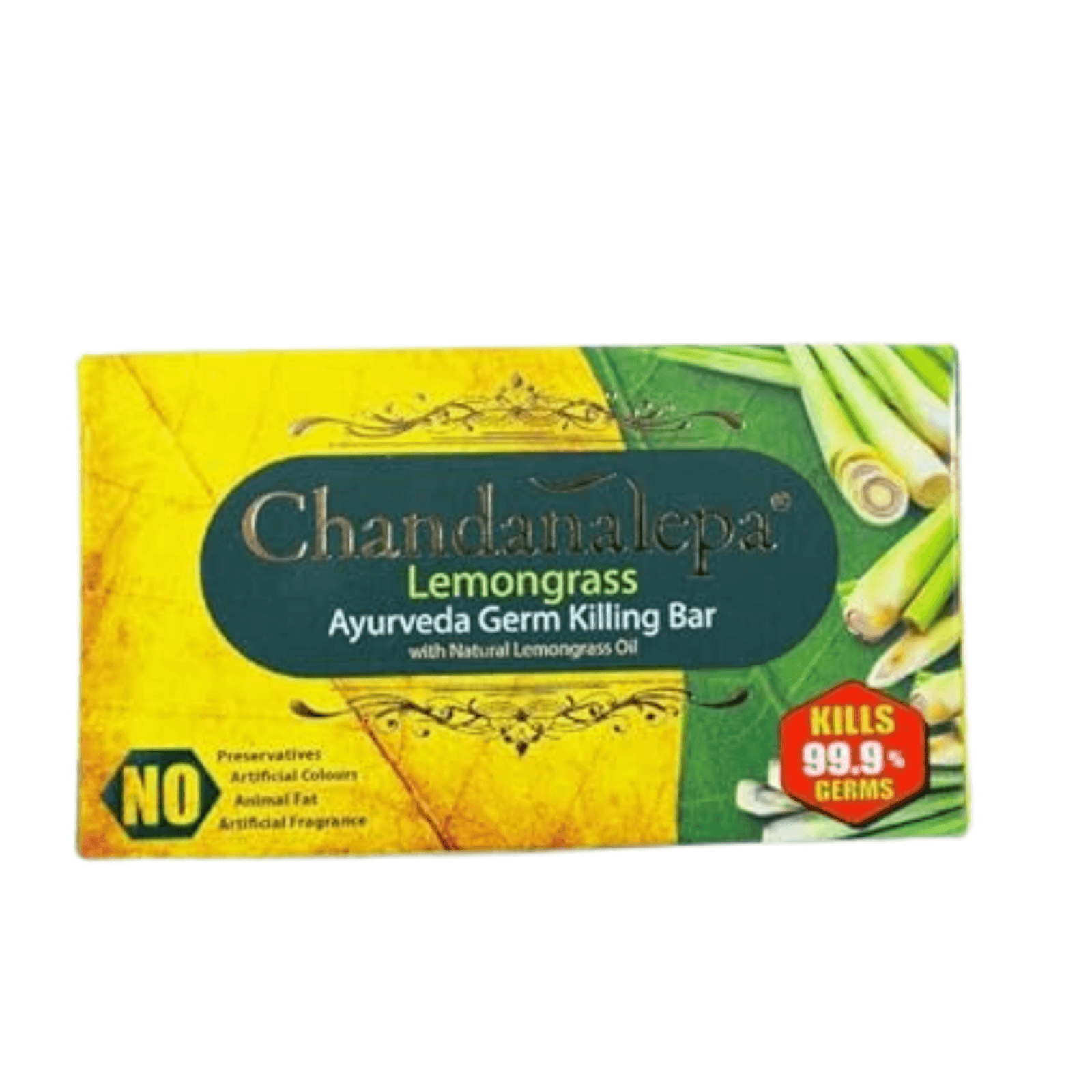 Chandanalepa Lemongrass Ayurveda Soap is Germ Killing Bar is the ultimate solution for maintaining healthy and fresh skin because it harnesses the powerful germ-killing properties of natural lemongrass oil. It also features traditional Ayurvedic extracts and a refreshing citrus aroma, making it the perfect choice for anyone seeking a natural and effective daily cleansing experience. Experience the revitalizing benefits of this authentic Sri Lankan Ayurvedic soap that purifies and rejuvenates your skin, leaving it feeling clean, balanced, and revitalized.