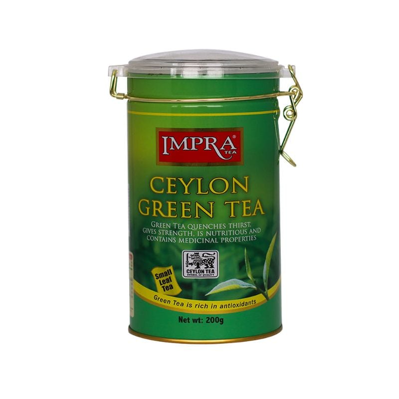 Experience the pure essence of Sri Lanka with Impra Ceylon Green Tea. This exquisite blend features small leaf tea, known for its vibrant flavor and rich aroma. Sourced from the lush highlands, this tea not only quenches thirst but also provides strength and contains valuable medicinal properties. Green tea is renowned for being rich in antioxidants, making it a healthy choice for daily consumption. Packaged in an attractive metal caddy, it makes a perfect gift or a delightful addition to your pantry.