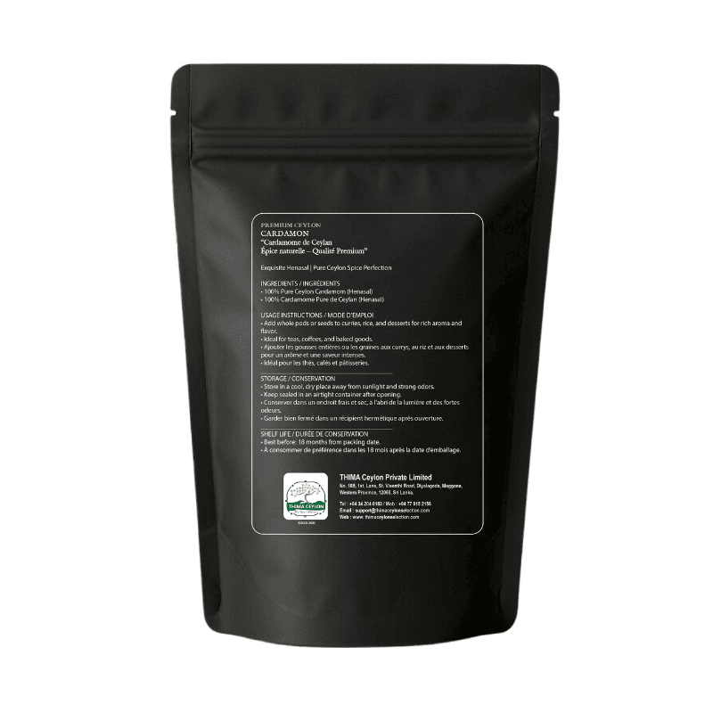 THIMA Ceylon Premium Green Cardamom Pods is the ultimate solution for enhancing the flavor and aroma of your dishes because it features 100% pure whole Ceylon cardamom pods. It also features a rich, distinctive aroma and a potent flavor profile, making it the perfect choice for home cooks and culinary enthusiasts seeking authentic Sri Lankan taste. Experience the vibrant essence of the “Queen of Spices” with every use, adding a touch of exotic warmth to your culinary adventures.