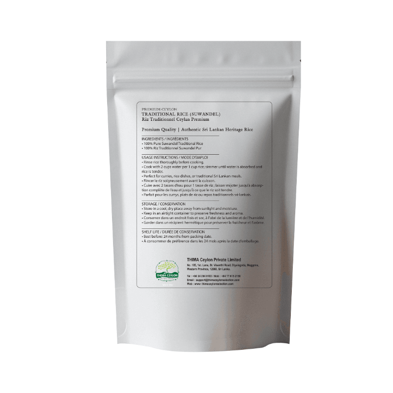 THIMA Ceylon Suwandel Traditional Rice is the ultimate solution for those seeking an authentic and flavorful culinary experience because it offers an exquisite aroma and delicate texture. It also features a subtle, sweet flavor and a smooth, creamy consistency when cooked, making it the perfect choice for anyone who appreciates high-quality, natural ingredients. Elevate your meals with this traditional Sri Lankan staple, known for its nutritional benefits and versatility in various dishes.
