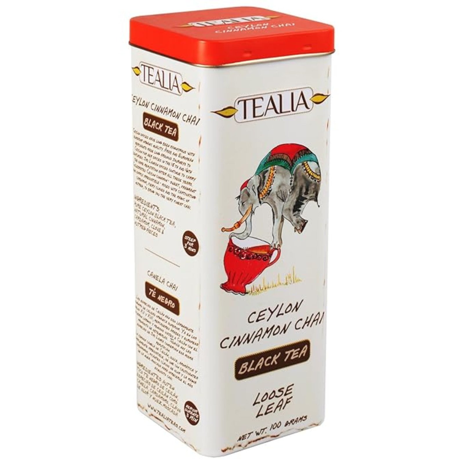 Tealia Ceylon Cinnamon Chai is the ultimate solution for those seeking a comforting and aromatic beverage, as it features a harmonious blend of pure Ceylon black tea with natural cinnamon and a medley of other select spices. Its presentation as loose leaf tea in an attractive tin makes it an ideal choice for discerning tea lovers who value both quality and exquisite flavor. This exquisite tea promises a delightful and invigorating sensory journey, perfect for any moment of your day.