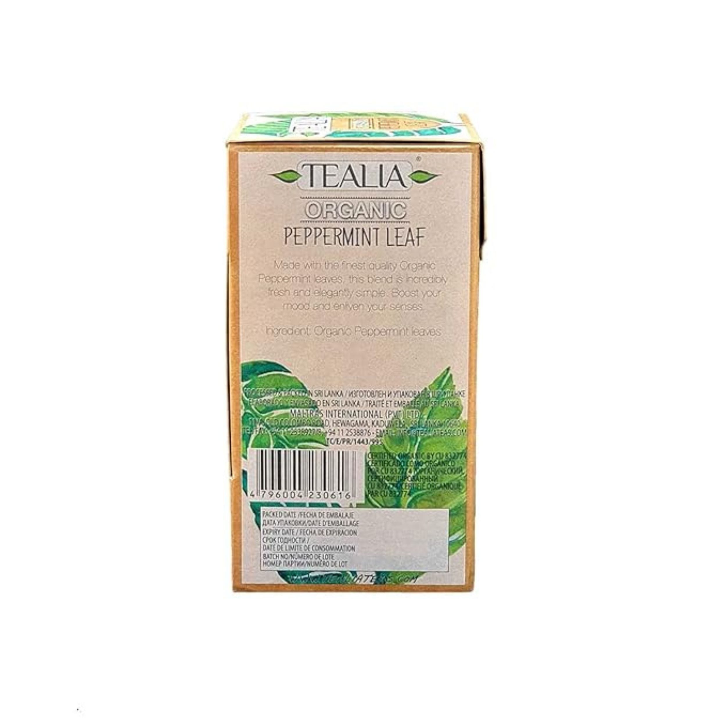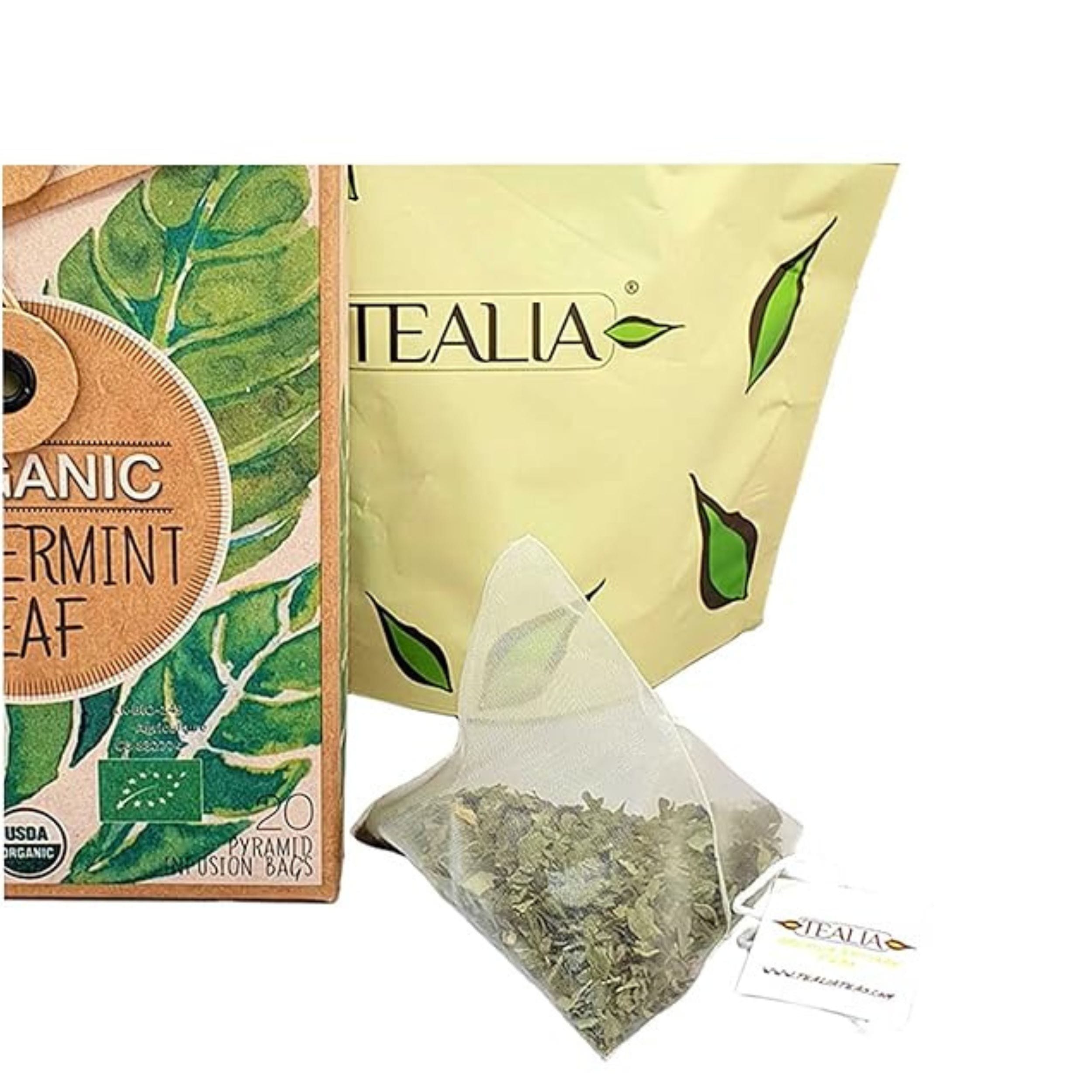 Tealia Organic Peppermint Leaf Tea is the ultimate solution for a refreshing and calming beverage because it is made with pure organic peppermint leaves. It also features pyramid tea bags for optimal infusion and a crisp, clean flavor, making it the perfect choice for anyone seeking a natural way to refresh and invigorate their senses. This delightful blend is perfect for enjoying any time of day, offering a moment of pure, natural refreshment.