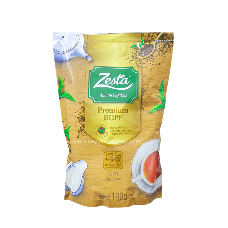 Experience the rich and robust flavor of Zesta Premium BOPF Ceylon Black Tea. Sourced from the renowned tea estates of Sri Lanka, this 100% Finest Broken Orange Pekoe Fannings offers a pure and delightful taste experience. Each sip delivers the authentic essence of Ceylon tea, known for its vibrant aroma and invigorating character. This all-natural blend is perfect for those seeking a premium tea experience to start their day or enjoy during a relaxing afternoon break.