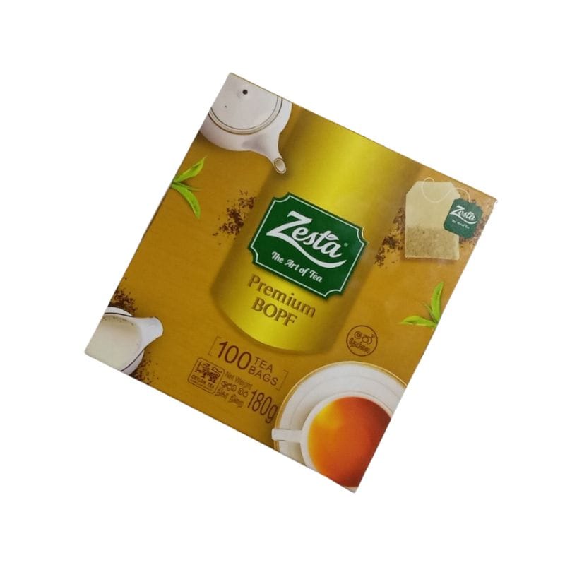 Experience the exquisite taste of Zesta Premium BOPF Ceylon Tea, presented in convenient tea bags. Sourced from the lush highlands of Sri Lanka, this black tea offers a rich aroma and robust flavor, embodying “The Art of Tea.” Each box contains 100 tea bags, perfect for your daily indulgence. Enjoy a pure and delightful taste experience that captures the true essence of Ceylon tea. Elevate your tea ritual with this premium selection.